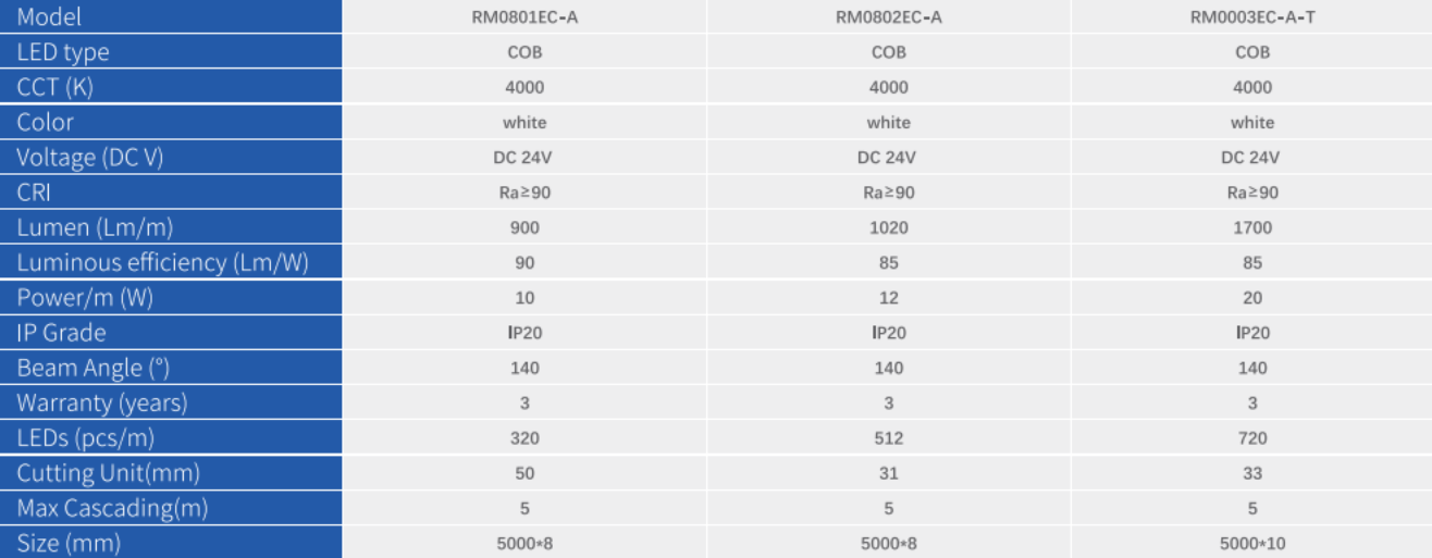 Світлодіодна стрічка RISHANG Premium-серії на COB-світлодіодах RM0801EC-A-NW