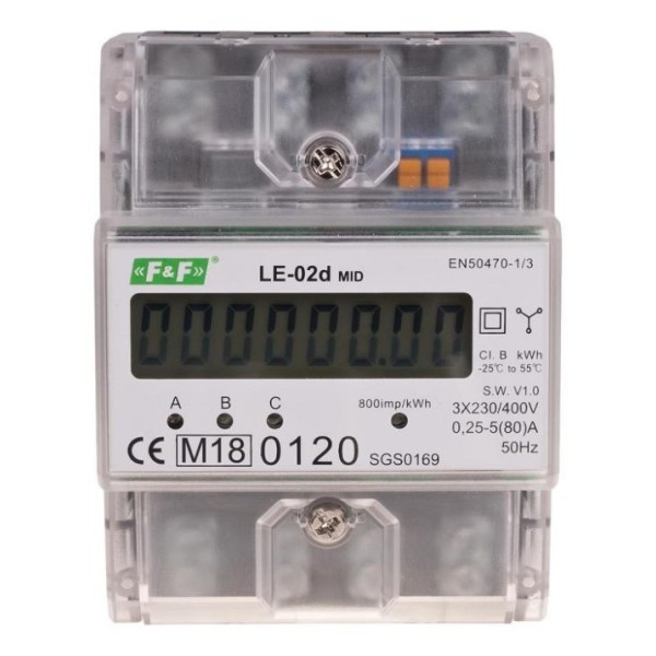Трифазний лічильник електроенергії F&F LE-02D 3х230/400В 3х63А